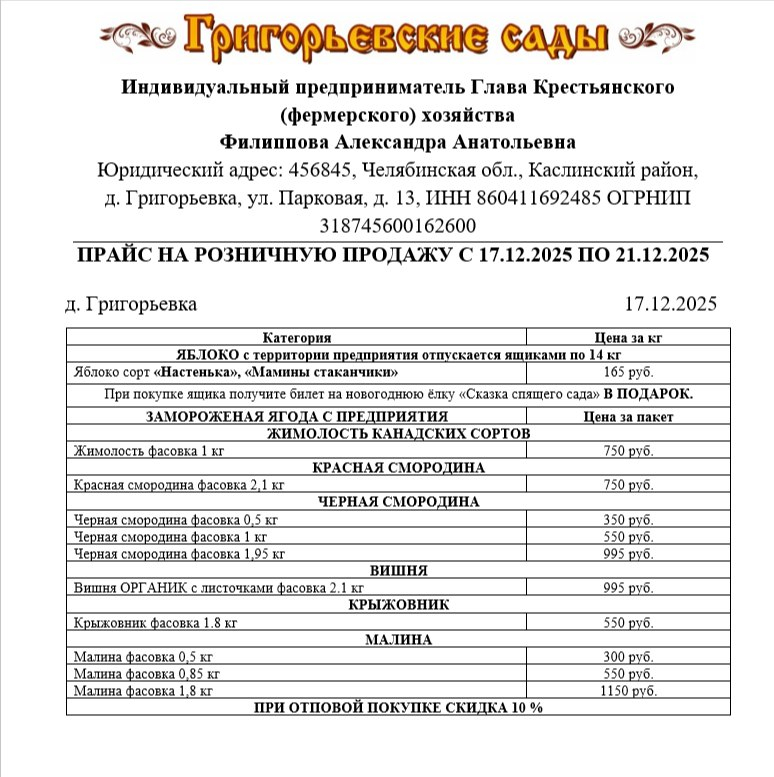 Новогодние каникулы с Григорьевскими садами!