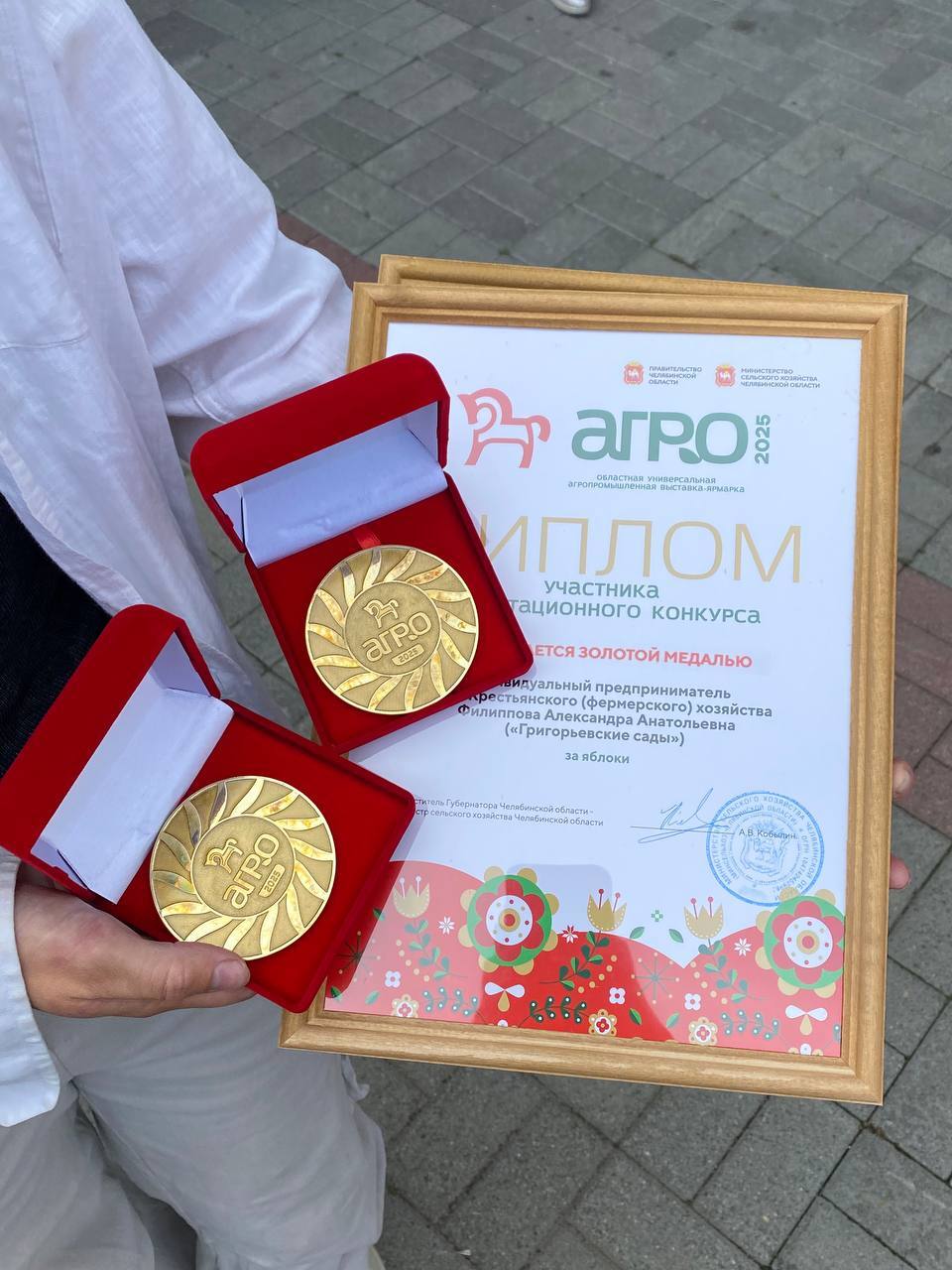 По итогам дегустационного конкурса качества пищевой продукции в рамках работы ХХХI Областной универсальной агропромышленной выставки-ярмарки «АГРО-2025» в Челябинске, в котором приняли участие большое количество предприятий, в том числе такие как «Ситно», «Чебаркульская птица» и др., «Григорьевские сады» завоевали 2 ЗОЛОТЫЕ МЕДАЛИ! 🥇🥇 Компетентная комиссия дала высокую оценку нереально вкусным яблокам 🍎 и сочной сливе 🍑, выращенным в формате «органик» в «Григорьевских садах»!